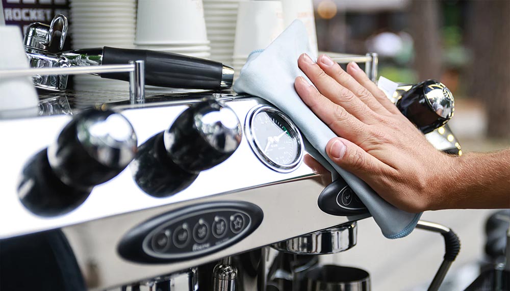 نظافت هیدرولیکی: تمیز کردن منظم سبد پورتافیلتر و دوش برای کاهش فشار معکوس بر پمپ.