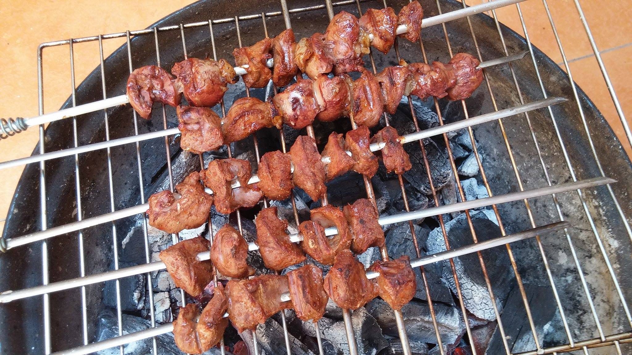 - سیخ ها را مدام بچرخانید تا یکدست کباب شود.